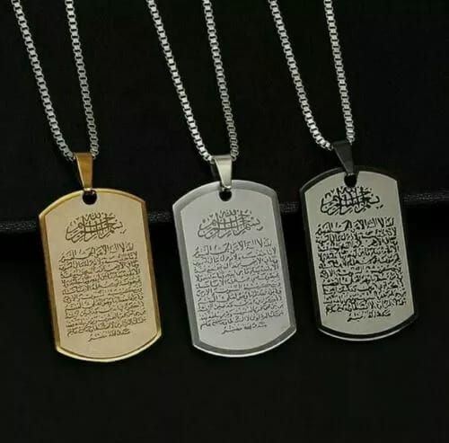Arabic Calligraphy of Ayatul Kursi "آية الكرسي" in Square Kufic Script "الخط الكوفي المربع", with one piece connected vector style, often known in English as The Throne Verse is the 255th verse of the 2nd Surah of the Quran, Al-Baqarah. The verse speaks about how nothing and nobody is regarded to be comparable to Allah. This is one of the best-known verses of the Quran and is widely memorised and displayed in the Islamic world.