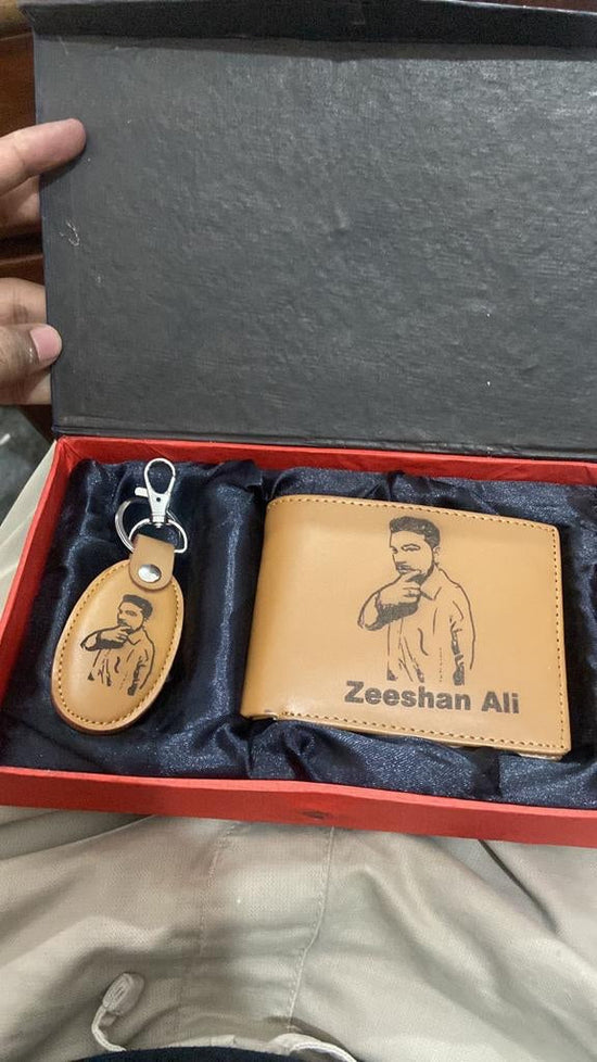 Engrave your Picture and Name on leather Quality Wallet & Keychain